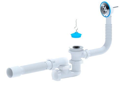 Сифон для ванны трубн. с пробкой на цепочке 1 1/2''x40 (нерж. выпуск D 70, гофрв 40x50) АНИ Пласт арт. E255